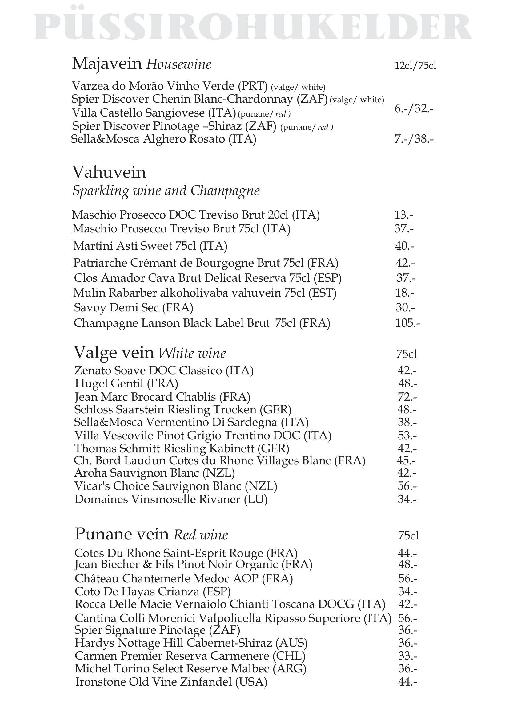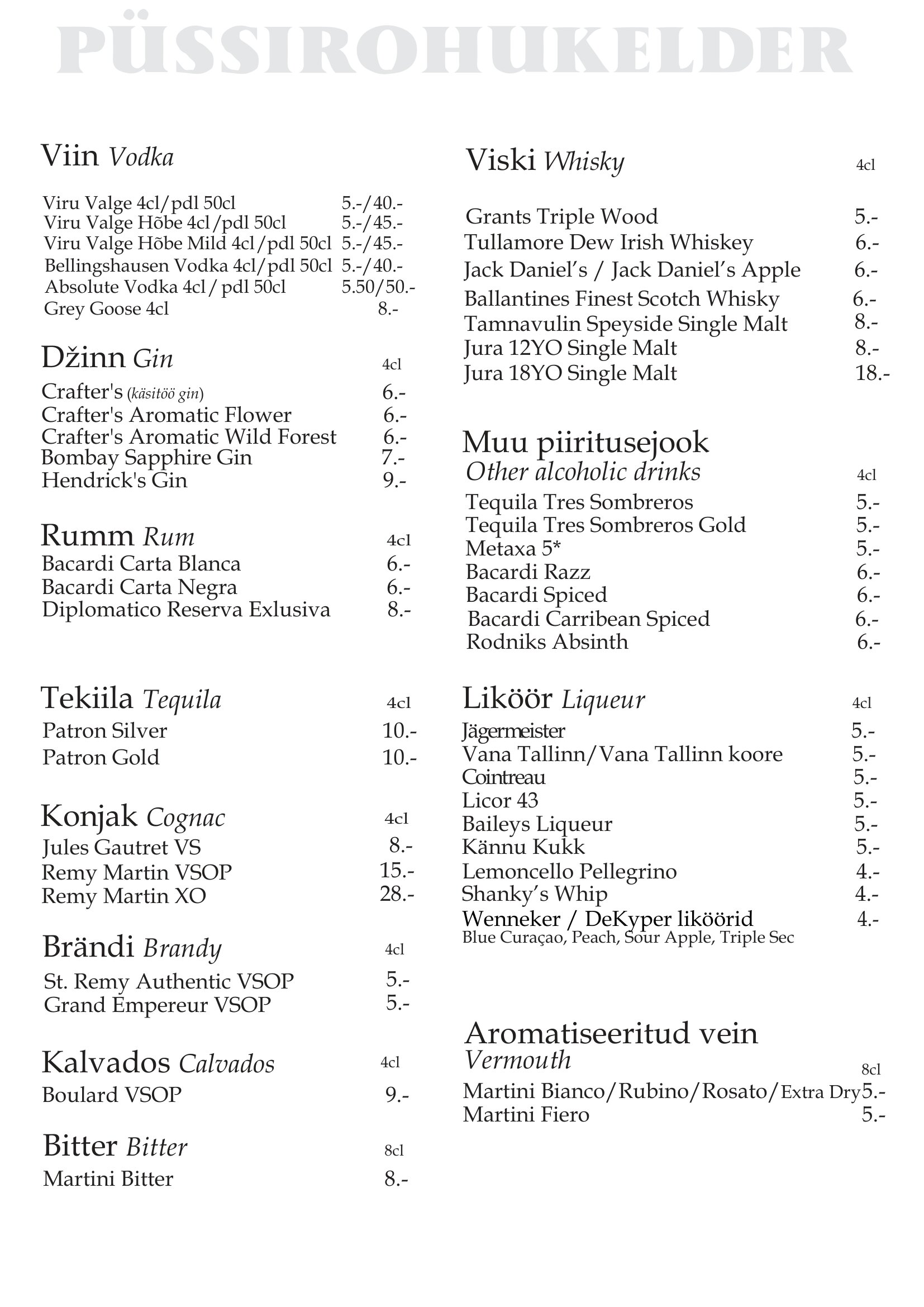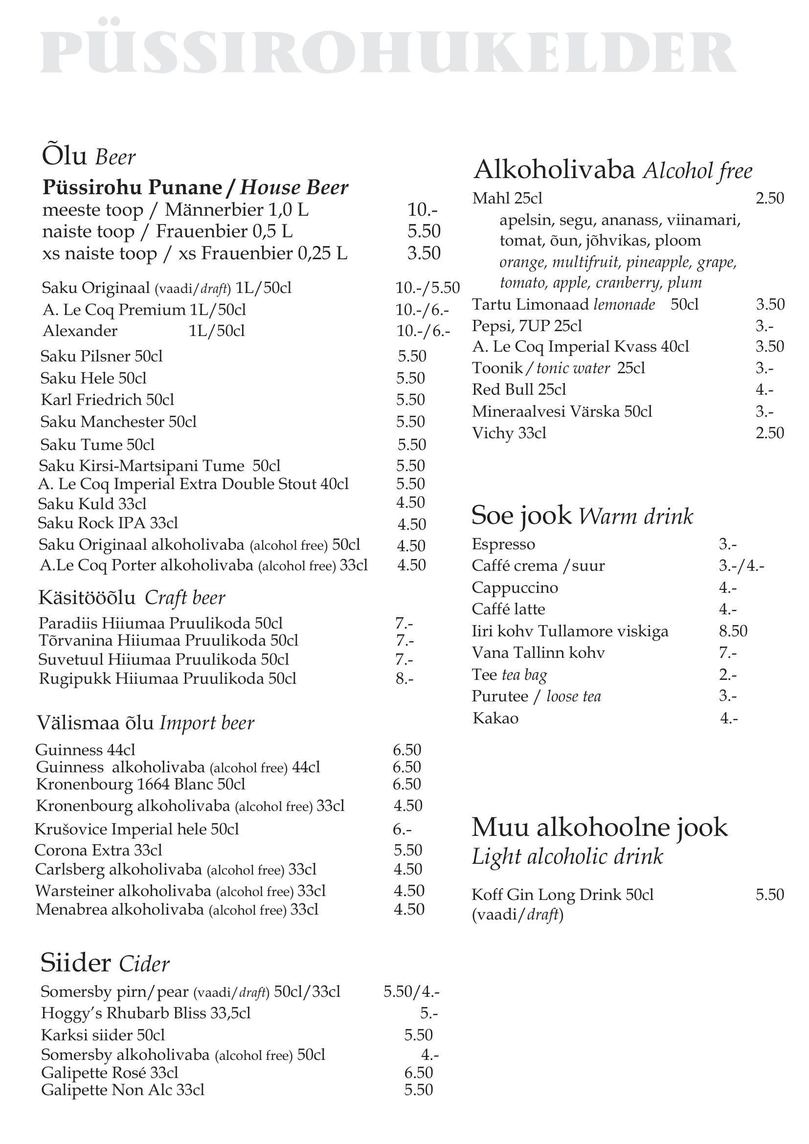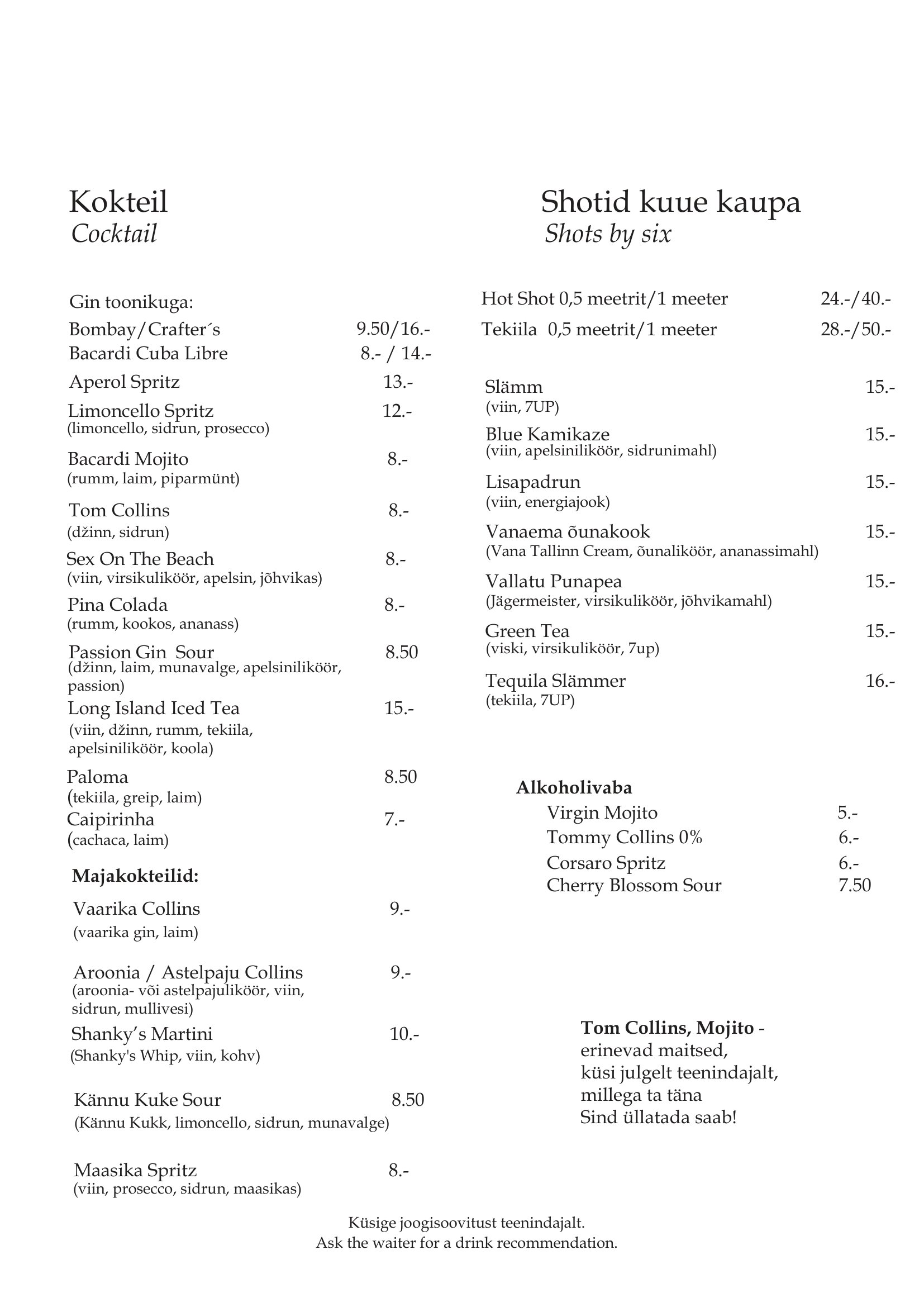 Sellest joogimenüüst leiad nii mõndagi meelepärast janutamise vastu. Viipa ja Sulle kantakse palju kannad!